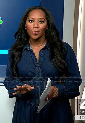 Kay Angrum on NBC News Daily on NBC was spotted wearing this corset denim dress on NBC News Daily on Oct 16 2025's episode. Kay's Dress is the Denim Corseting Midi Dress by Derek Lam 10 Crosby.
