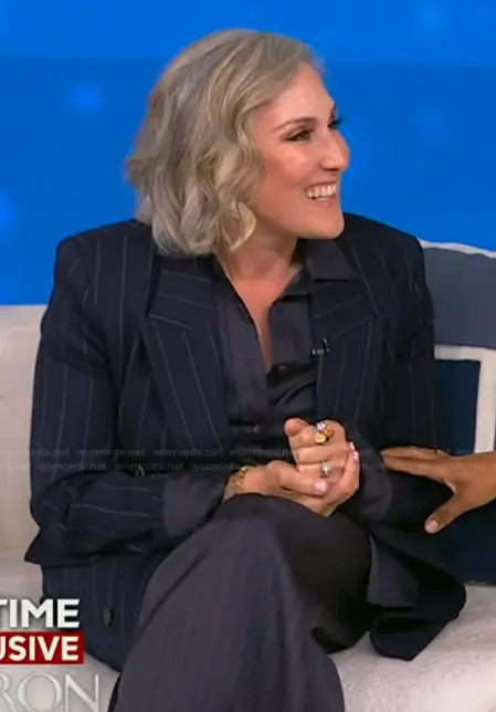 on Tamron Hall Show on ABC was spotted wearing this pinstripe blazer on Tamron Hall Show on Oct 17 2025's episode. 's Blazer is the Double-Breasted Blazer in Stretch Wool by Argent.