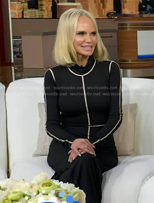on Good Morning America on ABC was spotted wearing this black piping dress on Good Morning America on Oct 17 2025's episode. 's Dress is the Contrast Piped Cotton Jersey Maxi Dress by MM6 Maison Margiela.