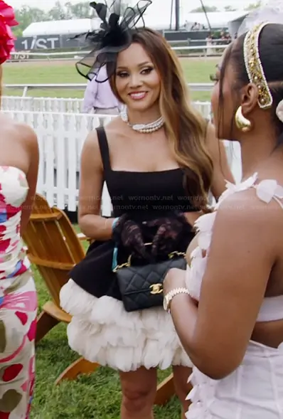 Ashley Darby on The Real Housewives of Potomac on Bravo was spotted wearing this black ruffled mini dress on The Real Housewives of Potomac on episode 'Tropic Like It's Hot' (10x04) in Oct 2025. Ashley's Dress is the Catalina Ruffled Satin Minidress by Bronx and Banco.