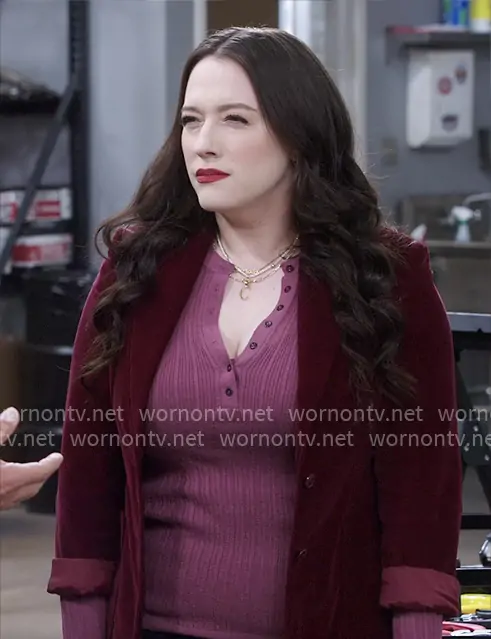 Riley (played by Kat Dennings) on Shifting Gears on ABC was spotted wearing this pink henley top on Shifting Gears on episode 'Passion' (2x03) in Oct 2025. Riley's Top is the Sheer Knit Long Sleeve Henley in Beet by Skims.