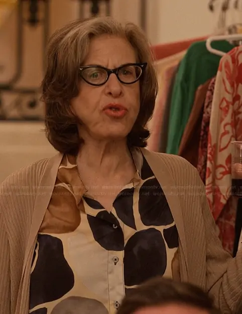 Uma Heller (played by Jackie Hoffman) on Only Murders in the Building on Hulu was spotted wearing this printed blouse on Only Murders in the Building on episode 'Lestr' (5x09) in Oct 2025. 's Top is the Pebble Print Button Front Top by Nic + Zoe.