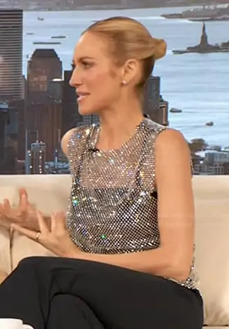 on The Drew Barrymore Show on CBS was spotted wearing this rhinestone embellished top on The Drew Barrymore Show on Oct 21 2025's episode. 's Top is the rhinestone-embellished top by Philosophy Di Lorenzo Serafini.