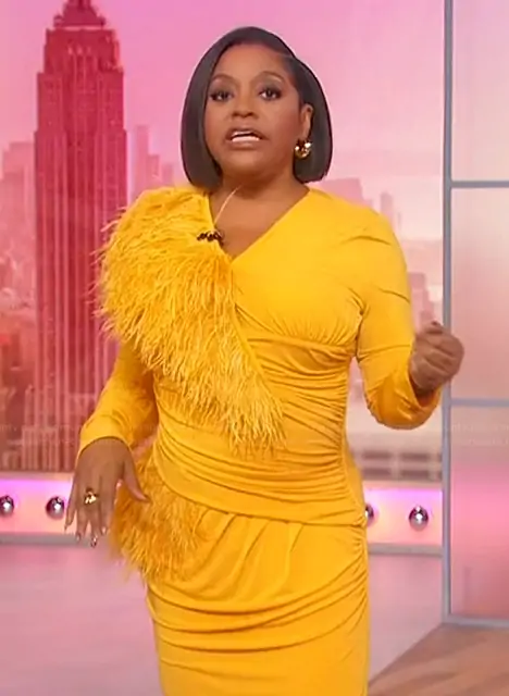 Sherri Shepherd on Sherri on FOX was spotted wearing this yellow feather trim dress on Sherri on Oct 22 2025's episode. Sherri's Dress is the 2024 Fall Winter Collection by Hanifa.