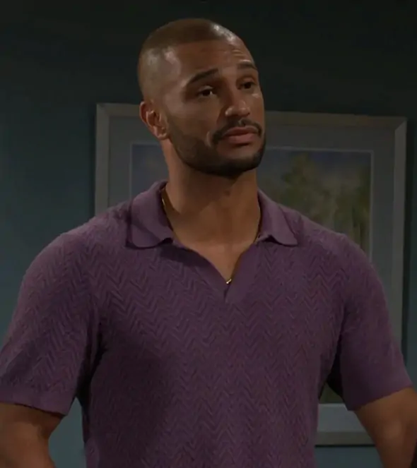Holden Novak (played by Nathan Owens) on The Young and the Restless on CBS was spotted wearing this purple chevron polo shirt on The Young and the Restless on Oct 22 2025's episode. Holden's Shirt is the Zuma Johnny Collar Chevron Terry Cloth Polo by Rag & Bone.
