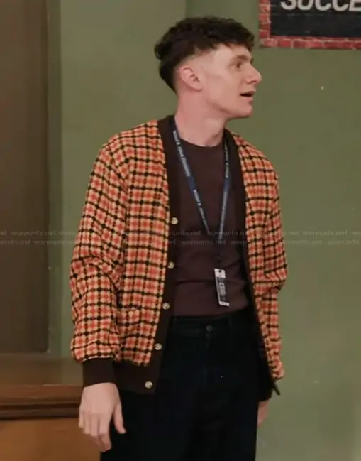 Jacob Hill (played by Chris Perfetti) on Abbott Elementary on ABC was spotted wearing this check print cardigan on Abbott Elementary on episode 'Game Night' (5x04) in Oct 2025. Jacob's Sweater is the Misquote Cardigan by Pleasures.