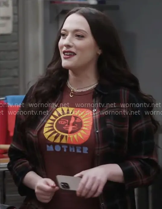 Riley (played by Kat Dennings) on Shifting Gears on ABC was spotted wearing this sun graphic tee and plaid shirt on Shifting Gears on episode 'Danger' (2x04) in Oct 2025. Riley's Top is the The Lil Sinful Tee in Sun Moon by Mother . Riley's Shirt is the Plaid Zoe Blouse by Pendleton.