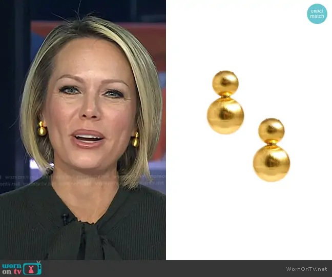 Dylan Dreyer on Today on NBC was spotted wearing this gold ball earrings on Today on Jan 16 2026's episode. Dylan's Earrings is the Large Audrey Earrings in Brushed Gold - Belle of the Ball by by Lisi Lerch.