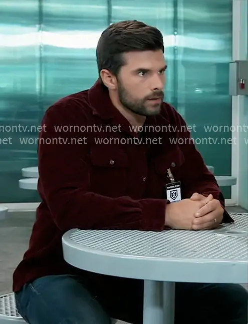 Harrison Chase (played by Josh Swickard) on General Hospital on ABC was spotted wearing this red corduroy shirt on General Hospital on Oct 23 2025's episode. Chase's Shirt is the Wide Wale Corduroy Sport Shirt by Polo Ralph Lauren .