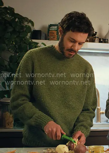 Noah (played by Adam Brody) on Nobody Wants This on Netflix was spotted wearing this green sweater on Nobody Wants This on episode 'Dinner Party' (2x01) in Oct 2025. Noah's Sweater is the Moss Green Melange Shetland Crew Jumper by Sunspel.