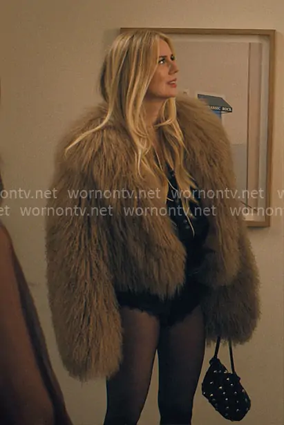 Morgan (played by Justine Lupe) on Nobody Wants This on Netflix was spotted wearing this fur jacket on Nobody Wants This on episode 'Dinner Party' (2x01) in Oct 2025. Morgan's Jacket is the Brown Shearling Jacket by Self Portrait.