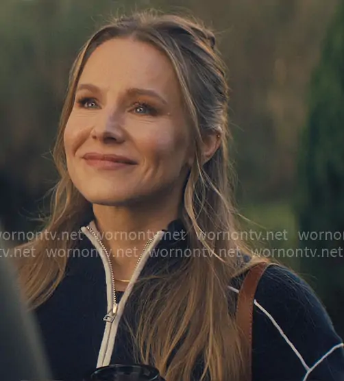 Joanne (played by Kristen Bell) on Nobody Wants This on Netflix was spotted wearing this navy blue track jacket on Nobody Wants This on episode 'Dinner Party' (2x01) in Oct 2025. Joanne's Jacket is the Cashmere Zippered Sweater in Midnight by Guest in Residence . Joanne's Bag is the Farrow Mini Bag in Natural Heritage by Sezane.