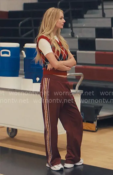 Morgan (played by Justine Lupe) on Nobody Wants This on Netflix was spotted wearing this red argyle vest and side stripe pants on Nobody Wants This on episode 'Leave It at the Tree' (2x02) in Oct 2025. Morgan's Vest is the Argyle cotton-jacquard vest by Guest in Residence . Morgan's Jacket is the Palmer Jacket by Agolde . Morgan's Pants is the Shine Track Pants by Wales Bonner . Morgan's Shoes is the 530 Sneakers by New Balance . Morgan's Bag is the Mini Boat and Tote by LL Bean.