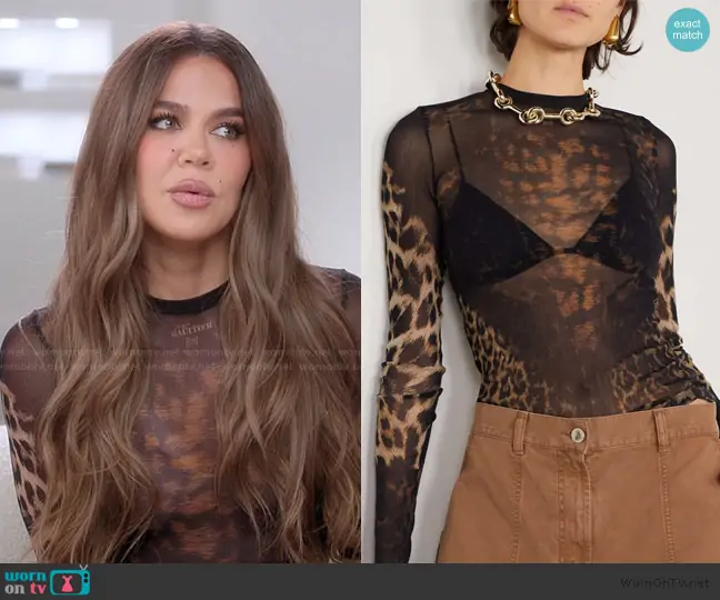 Khloe Kardashian (played by Khloe Kardashian) on The Kardashians on Hulu was spotted wearing this mesh confessional top on The Kardashians on episode 'Episode 1' (7x01) in Oct 2025. Khloe's Top is the Mesh Long Sleeve Printed Top With Lace by Jean Paul Gaultier.