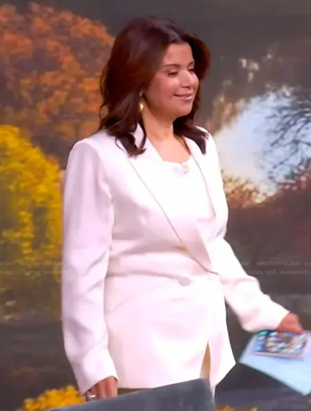 Ana Navarro on The View on ABC was spotted wearing this white blazer and pants on The View on Oct 24 2025's episode. Ana's Blazer is the Rickie Jacket by Veronica Beard . Ana's Pants is the Robinne Crepe Back Satin Wide Leg Pants by Veronica Beard.