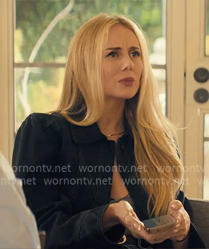 Morgan (played by Justine Lupe) on Nobody Wants This on Netflix was spotted wearing this black denim jacket on Nobody Wants This on episode 'Valentine's Day' (2x04) in Oct 2025. Morgan's Jacket is the Cinched Denim Jacket by Christopher Esber.