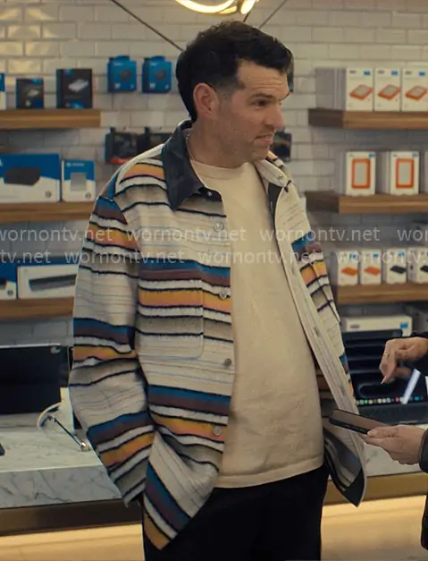 Sasha Roklov (played by Timothy Simons) on Nobody Wants This on Netflix was spotted wearing this striped shirt jacket on Nobody Wants This on episode 'A Better Rabbi' (2x08) in Oct 2025. Sasha's Jacket is the Duncan Overshirt by Isabel Marant.