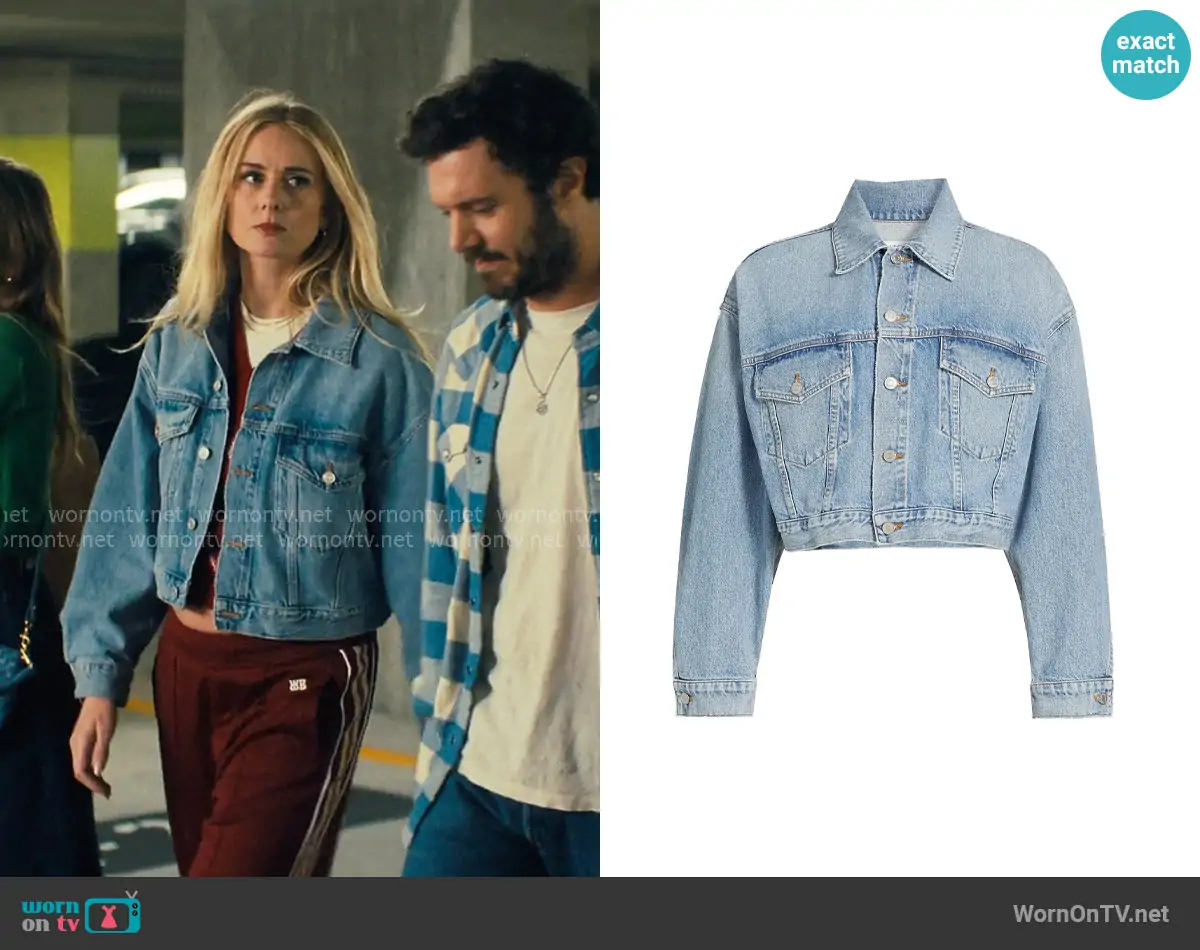 Joanne (played by Kristen Bell) on Nobody Wants This on Netflix was spotted wearing this burgundy cropped cardigan on Nobody Wants This on episode 'Crossroads' (2x09) in Oct 2025. Joanne's Top is the Cropped Cardigan in Bordeaux by Saint Laurent . Joanne's Belt is the Benny suede belt by Khaite . Joanne's Bag is the Milo Classic Bag in Smooth Black by Sezane.