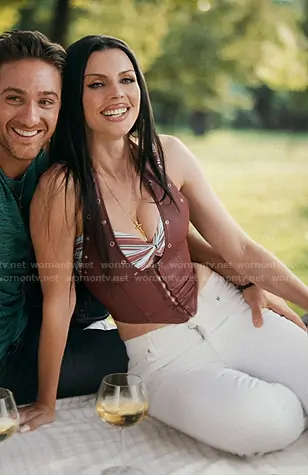 Raquel Drabowski (played by Julia Fox) on Elsbeth on CBS was spotted wearing this brown grommet leather vest on Elsbeth on episode 'Good Grief' (3x03) in Oct 2025. 's Top is the Palladia Pu Jordy Corset in Burgundy by Princess Polly.