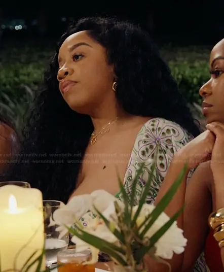 Angel Massie on The Real Housewives of Potomac on Bravo was spotted wearing this floral smocked mini dress on The Real Housewives of Potomac on episode 'Tropic Like It's Hot' (10x04) in Oct 2025. Angel's Dress is the Jean Broderie Anglaise Cotton-Blend Mini Dress by Charo Ruiz.