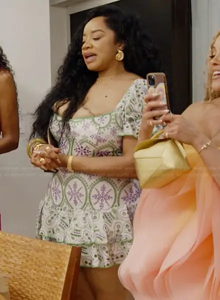 Angel Massie on The Real Housewives of Potomac on Bravo was spotted wearing this floral smocked mini dress on The Real Housewives of Potomac on episode 'Sunshine and Sexts' (10x05) in Nov 2025. Angel's Dress is the Jean Broderie Anglaise Cotton-Blend Mini Dress by Charo Ruiz.