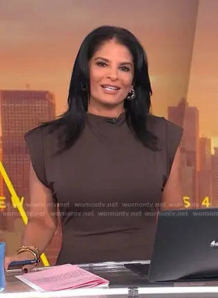 Darlene Rodriguez on Today on NBC was spotted wearing this brown jersey dress on Today on Oct 27 2025's episode. Darlene's Dress is the Harper Dropped Cap Sleeve Midi Sheath Dress in Chocolage by Antonio Melani.