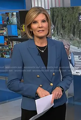 Kate Snow on NBC News Daily on NBC was spotted wearing this blue double breasted blazer on NBC News Daily on Jan 02 2026's episode. Kate's Jacket is the Gail Dickey Double Breasted Blazer by Veronica Beard.