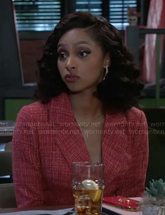 Kat Richardson (played by Colby Muhammad) on Beyond the Gates on CBS was spotted wearing this red tweed blazer dress on Beyond the Gates on Oct 28 2025's episode. Kat's Dress is the Deluxe Desire Red Tweed Long Sleeve Blazer Mini Dress by Lulus.