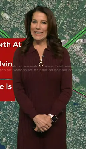 Heather O’Rourke on Good Morning America on ABC was spotted wearing this burgundy cable knit dress on Good Morning America on Oct 28 2025's episode. Heather's Dress is the Cable-Knit Long-Sleeve Sweater Dress in Wine by Robbie Bee.