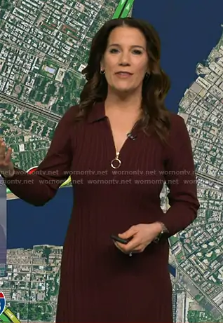 Heather O’Rourke on Good Morning America on ABC was spotted wearing this burgundy cable knit dress on Good Morning America on Dec 02 2025's episode. Heather's Dress is the Cable-Knit Long-Sleeve Sweater Dress in Wine by Robbie Bee.