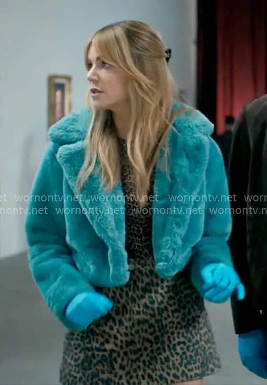 Morgan Gillory (played by Kaitlin Olson) on High Potential on Hulu was spotted wearing this turquoise blue fur jacket on High Potential on episode 'The One That Got Away' (2x07) in Oct 2025. Morgan's Jacket is the Faux Fur Jacket by Zara.