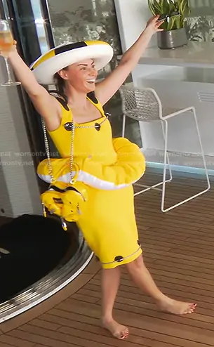 Bronwyn Newport on The Real Housewives of Salt Lake City on Bravo was spotted wearing this yellow dress on The Real Housewives of Salt Lake City on episode 'Above Deck and Below the Belt' (6x07) in Oct 2025. Bronwyn's Outfit is the Spring Summer 2023 Collection by Moschino.