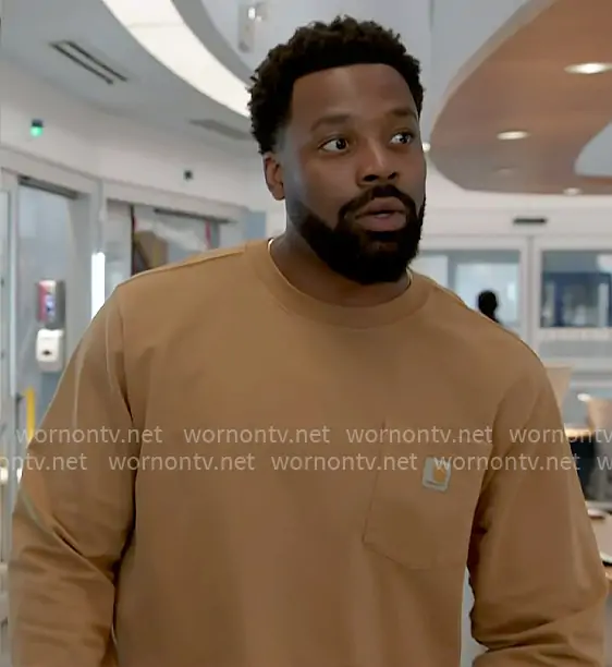 Kevin Atwater (played by LaRoyce Hawkins) on Chicago PD on NBC was spotted wearing this light brown sweatshirt on Chicago PD on episode 'Miami' (13x05) in Oct 2025. Kevin's Sweatshirt is the Relaxed Fit Midweight Garment Dye French Terry Crewneck Pocket Sweatshirt in Carhartt Brown by Carhartt.