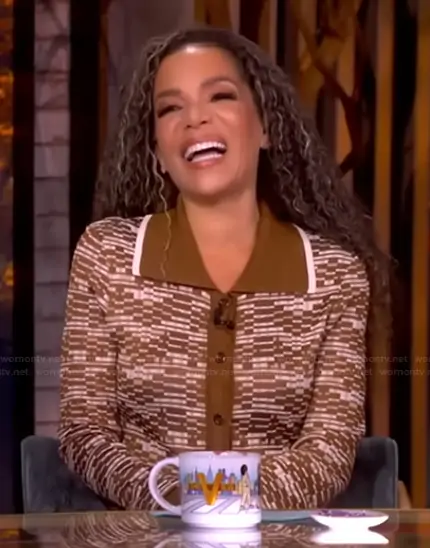 Sunny Hostin on The View on ABC was spotted wearing this brown abstract print polo dress on The View on Oct 31 2025's episode. Sunny's Dress is the Stephanie Knit Shirt Dress by Alemais.