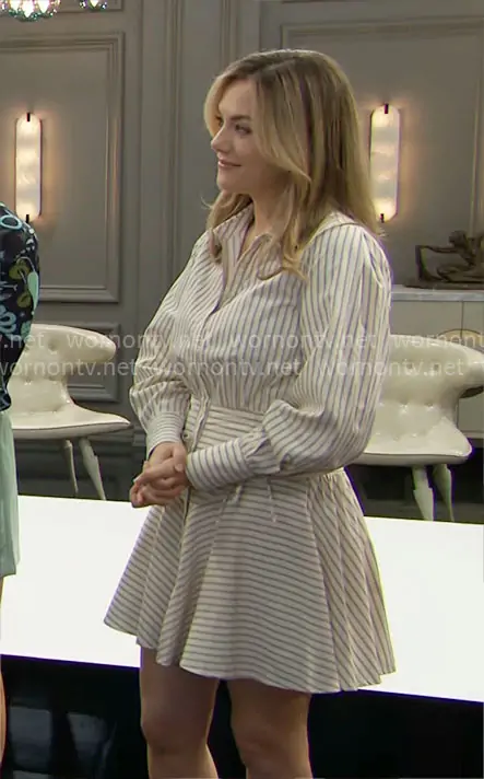 Hope Logan (played by Annika Noelle) on The Bold and the Beautiful on CBS was spotted wearing this striped shirtdress on The Bold and the Beautiful on Oct 31 2025's episode. Hope's Dress is the Azra Mini Dress by En Saison .