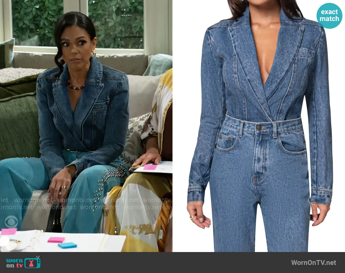 Kat Richardson (played by Colby Muhammad) on Beyond the Gates on CBS was spotted wearing this denim blazer and pleated skirt set with silver shirt on Beyond the Gates on Oct 31 2025's episode. Kat's Top is the Brady Self-Tie Button-Front Blouse by Alice + Olivia . Kat's Jacket is the Double-Breasted Faux-Denim Jacket by Karl Lagerfeld Paris . Kat's Skirt is the Pleated Button-Trim Skirt by Karl Lagerfeld Paris . Kat's Earrings is the Lasso Hoop Earrings by Shashi . Kat's Bag is the Faux Leather Shoulder Bag by Mango.