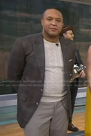 on Today on NBC was spotted wearing this grey cable knit sweater on Today on Nov 03 2025's episode. 's Sweater is the Linen Cable Knit Sweater by Brooks Brothers.
