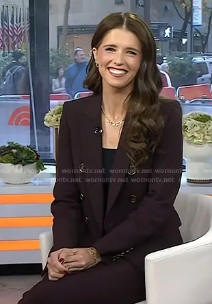 on Today on NBC was spotted wearing this brown blazer and cropped pants on Today on Nov 04 2025's episode. 's Jacket is the Miller Dickey Jacket in Dark Currant by Veronica Beard . 's Pants is the Arte Kick-Flare Pant in Dark Currant by Veronica Beard.