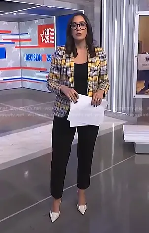 Savannah Sellers on NBC News Daily on NBC was spotted wearing this white buckle slingback pumps on NBC News Daily on Nov 04 2025's episode. Savannah's Shoes is the Maysli 70 Nappa Slingback by Manolo Blahnik.