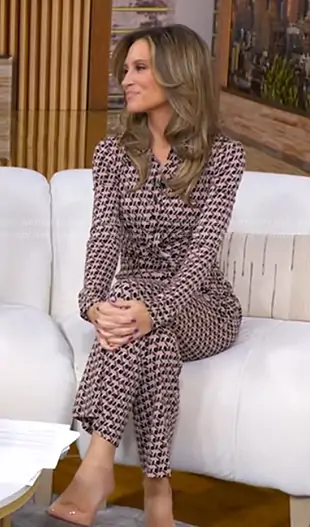 Rhiannon Ally on Good Morning America on ABC was spotted wearing this pink print jumpsuit on Good Morning America on Nov 04 2025's episode. Rhiannon's Jumpsuit is the Michelle Jumpsuit in Wave Geo Camel by Diane von Furstenberg.
