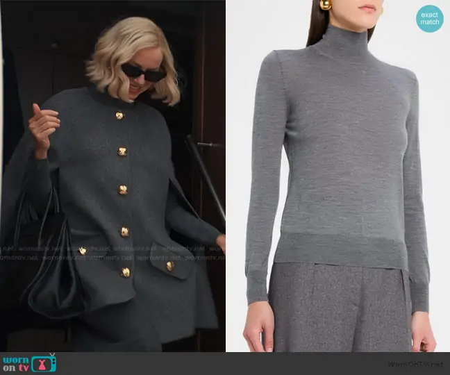 Liberty Ronson (played by Naomi Watts) on Alls Fair on Hulu was spotted wearing this gray cape jacket on Alls Fair on episode 'Pilot' (1x01) in Nov 2025. Liberty's Sweater is the Turtleneck Wool-Silk Sweater by Carolina Herrera . Liberty's Jacket is the Button-Front Wool-Cashmere Cape by Carolina Herrera . Liberty's Sunglasses is the DiorMidnight B1I cat-eye acetate sunglasses by Dior.