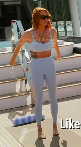 Whitney Rose on The Real Housewives of Salt Lake City on Bravo was spotted wearing this bue sports bra and leggings on The Real Housewives of Salt Lake City on episode 'Unicorn Overboard' (6x09) in Nov 2025. Whitney's Bra is the Strappy Light-Support Padded Sports Bra by Nike Zenvy . Whitney's Leggings is the High-Waisted 7/8 Leggings by Nike Zenvy.