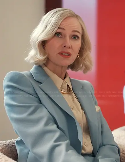 Liberty Ronson (played by Naomi Watts) on Alls Fair on Hulu was spotted wearing this beige silk button down blouse on Alls Fair on episode 'Pilot' (1x01) in Nov 2025. Liberty's Top is the Silk-jacquard shirt by Gucci.