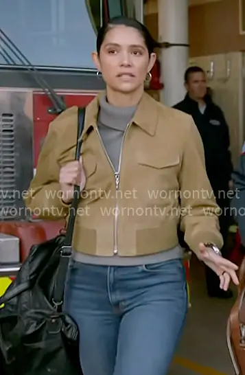 Stella Kidd (played by Miranda Rae Mayo) on Chicago Fire on NBC was spotted wearing this suede bomber jacket on Chicago Fire on episode 'Crime of Passion' (14x09) in Jan 2026. Stella's Jacket is the Collection cropped flight jacket in suede by J. Crew.