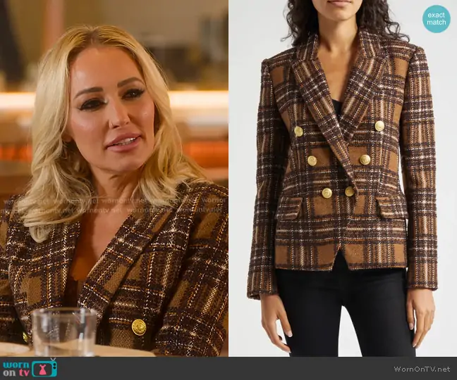 Mary Fitzgerald on Selling Sunset on Netflix was spotted wearing this brown plaid blazer on Selling Sunset on episode 'Time to Clean House' (9x10) in Nov 2025. Mary's Jacket is the Kenzie Double Breasted Blazer by L'Agence.
