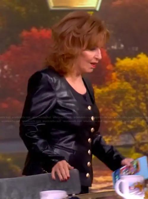 Joy Behar on The View on ABC was spotted wearing this black leather square neck jacket on The View on Nov 06 2025's episode. Joy's Jacket is the Lavena Faux Leather Jacket by Generation Love.