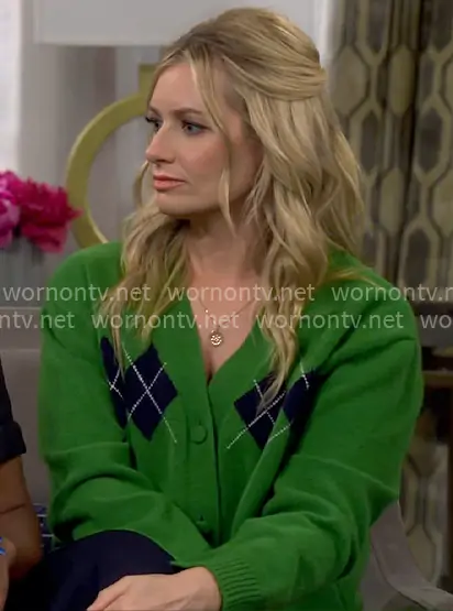 Gemma (played by Beth Behrs) on The Neighborhood on CBS was spotted wearing this green argyle cardigan on The Neighborhood on episode 'Welcome to New Horizons' (8x05) in Nov 2025. Gemma's Sweater is the Argyle Knit Cardigan by Zara . Gemma's Shoes is the Chuck Taylor® All Star® Low Top Sneaker by Converse.