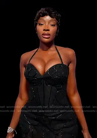 Chelsea Lazkani on Selling Sunset on Netflix was spotted wearing this black reunion dress on Selling Sunset on episode 'Reunion' (9x11) in Nov 2025. Chelsea's Dress is the custom dress made by Couture by Tabik.