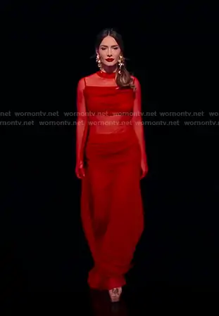 Sandra Vergara on Selling Sunset on Netflix was spotted wearing this red mesh reunion dress on Selling Sunset on episode 'Reunion' (9x11) in Nov 2025. Sandra's Dress is the Jersey Maxi Dress by Burc Akyol.