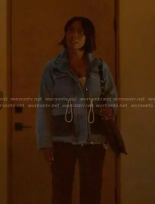 Athena Grant (played by Angela Bassett) on 9-1-1 on ABC was spotted wearing this drawstring denim jacket on 9-1-1 on episode 'Día de los Muertos' (9x05) in Nov 2025. Athena's Jacket is the Denim Jacket in Mid denim by Co.